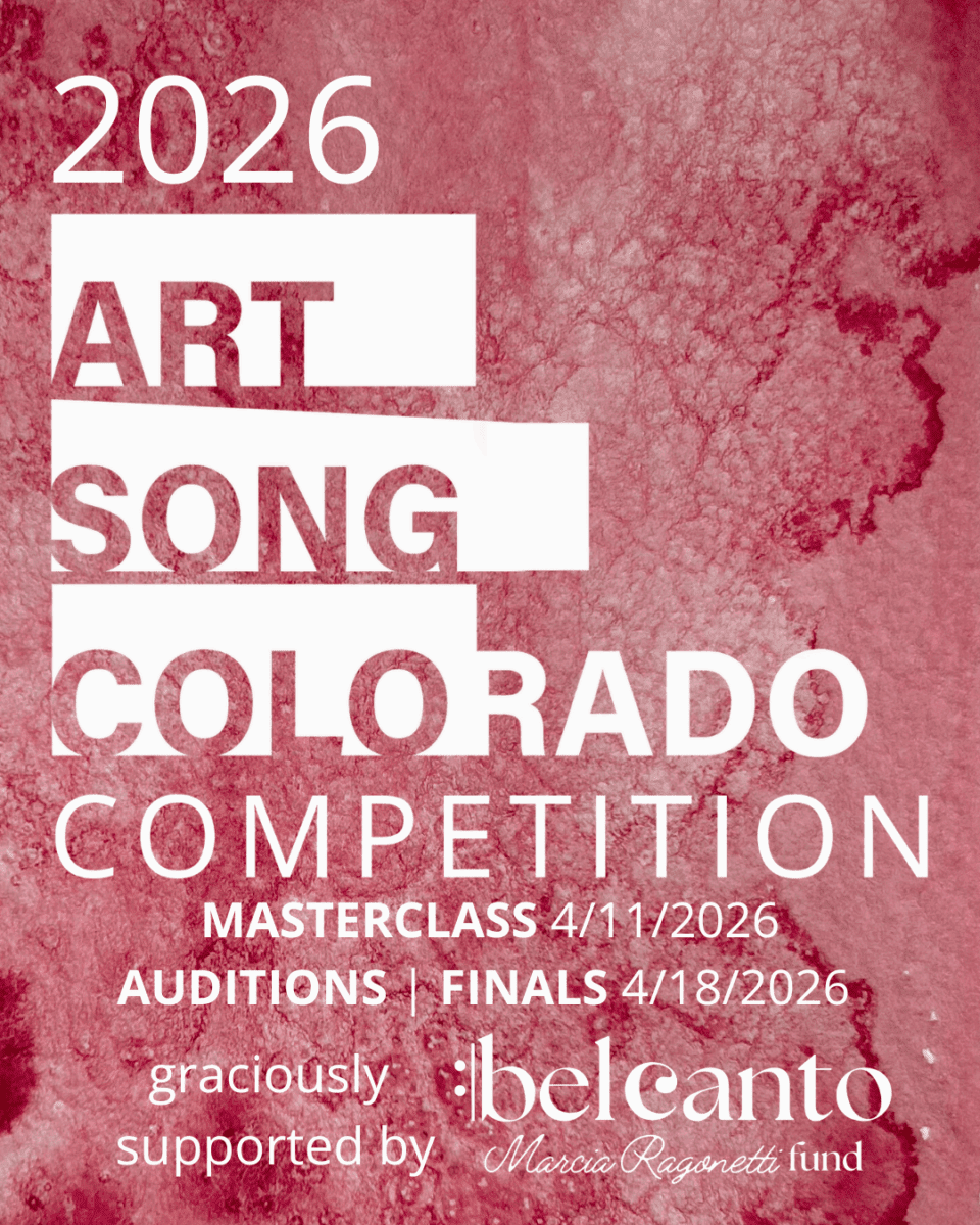 Are you an emerging professional singer or love to sing classical songs? Join us for the 2026 Art Song Colorado Masterclass and Competition.